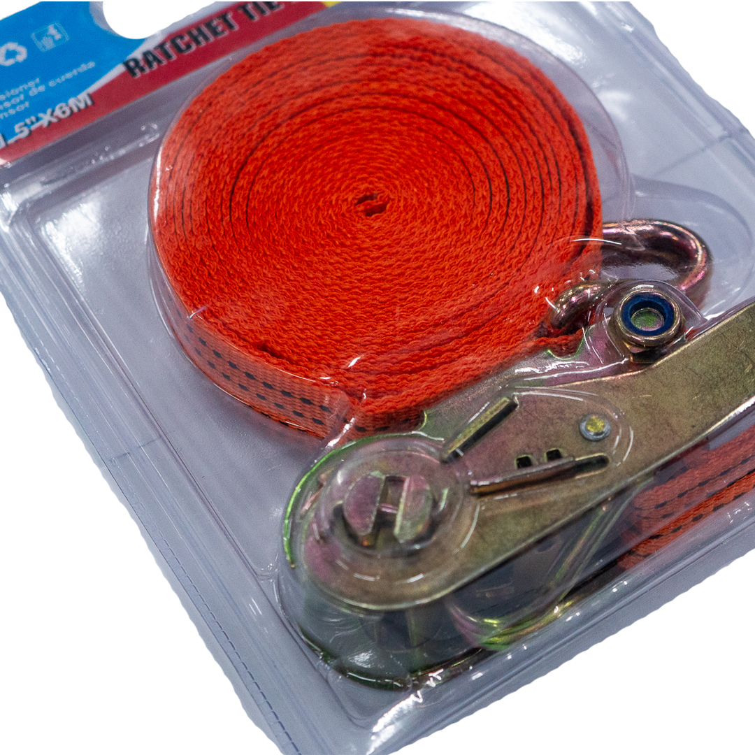 1- Cinta Amarração de Carga com Catraca de 4cm com 6 Metros Laranja