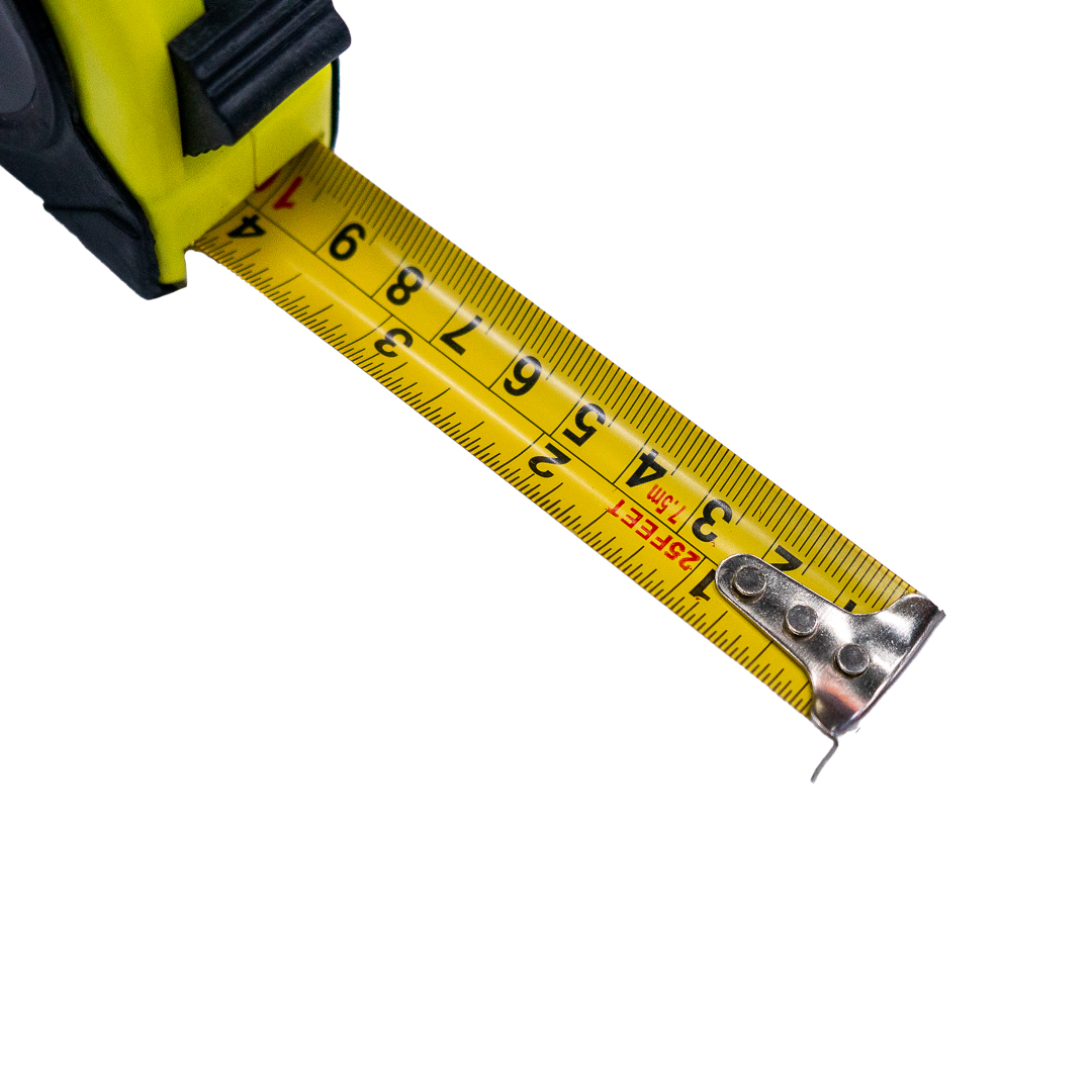Apesar de possuir 7,5 Mts, tem design próprio que facilita utilização com uma só mão. Trava de fixacão móvel da fita graduada assegura medição precisa de superfícies. Mola de retorno reforçada.